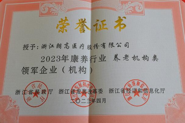 喜报||浙江朗高医疗股份有限公司荣获“浙江省2023年康养行业领军企业”