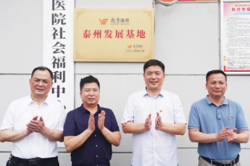 越秀朗高副董事长、总经理涂家钦与泰州市民政局党组成员、市社会福利中心主任刘银林共同为“越秀康养泰州发展基地”挂牌。