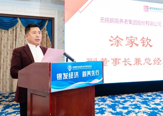 无锡朗高养老集团股份有限公司副董事长兼总经理涂家钦在致辞中对各位领导、专家、学者的到来表示热烈的欢迎。他表示,养老事业是一项关乎民生福祉、社会和谐与人类文明进步的伟大事业,越秀朗高集团自成立以来,始终致力于探索和实践医养结合的新型养老服务模式,通过整合医疗资源与养老服务,为老年人提供从生活照料到健康管理、从精神慰藉到康复理疗的全方位服务。涂总由衷感谢主办方全国卫生产业企业管理协会-老年医养结合产业分会,倾力竭诚搭建本次全国性医养结合老年营养健康方面的交流平台,并给予了越秀朗高宝贵的承办机会。这不仅是一次展示越秀朗高团队实力和服务水平的绝佳机会,更是一次与行业内同仁交流学习、共同进步的难得相聚,期待与协会在未来的合作中,共同书写更加精彩的篇章!